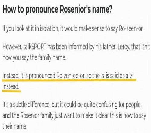 那么,以尊重球員本人的發(fā)音對(duì)其名字進(jìn)行翻譯的原則,Rosenior就應(yīng)該被譯為羅曾尼爾。