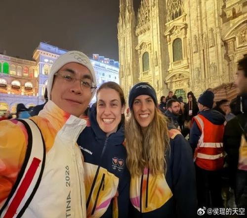 侯琨赴米蘭大教堂觀看冬奧圣火傳遞儀式圖/侯琨社交媒體