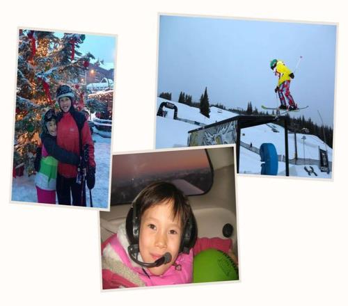 10歲時的谷愛凌與母親燕在太浩湖;約6歲時在飛機上;9歲時在科羅拉多州銅山舉行的全國青少年比賽中。