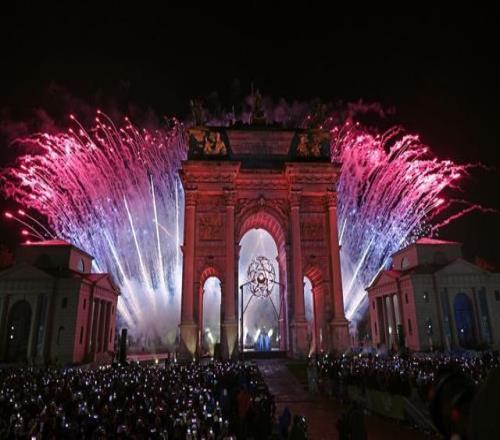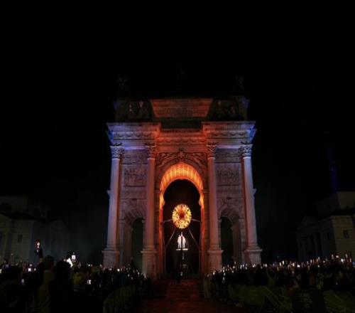 這是在米蘭和平拱門拍攝的主火炬被點(diǎn)燃。