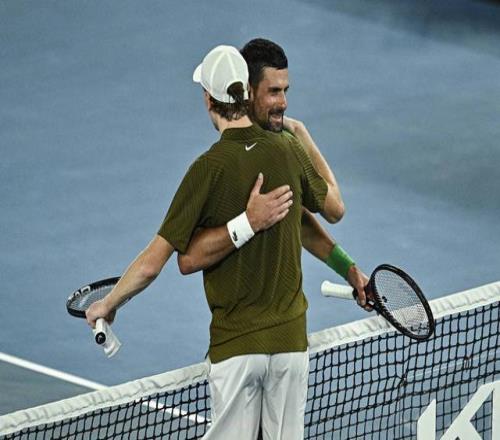 德約與辛納擁抱致意。