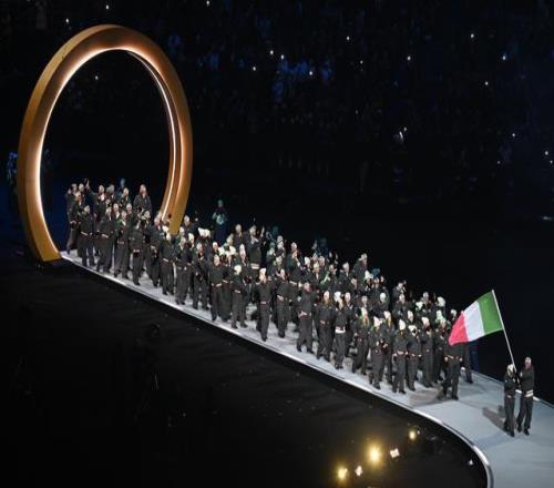 2月6日,意大利體育代表團在開幕式上入場。新華社記者 程敏 攝