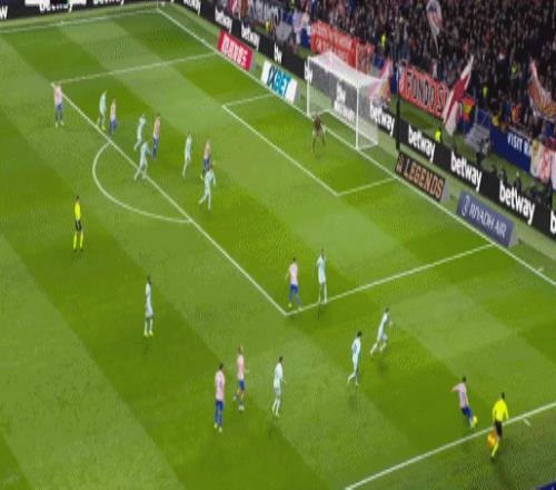下半場第76分鐘,馬競造成迭戈-略倫特不幸烏龍,但VAR介入后判罰格列茲曼越位在先,這粒進(jìn)球被吹,VAR劃線鏡頭顯示,格列茲曼的腳尖稍稍越位。