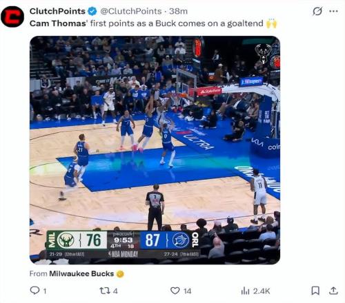 北京時(shí)間2月10日托馬斯迎來(lái)雄鹿首秀,面對(duì)魔術(shù)隊(duì)這支防守球隊(duì),全場(chǎng)13分托馬斯就命中了這一個(gè)運(yùn)動(dòng)戰(zhàn),5中1,三分1中0,罰球2中2,拿4分1籃板1助攻,命中率20%,正負(fù)值-1。
